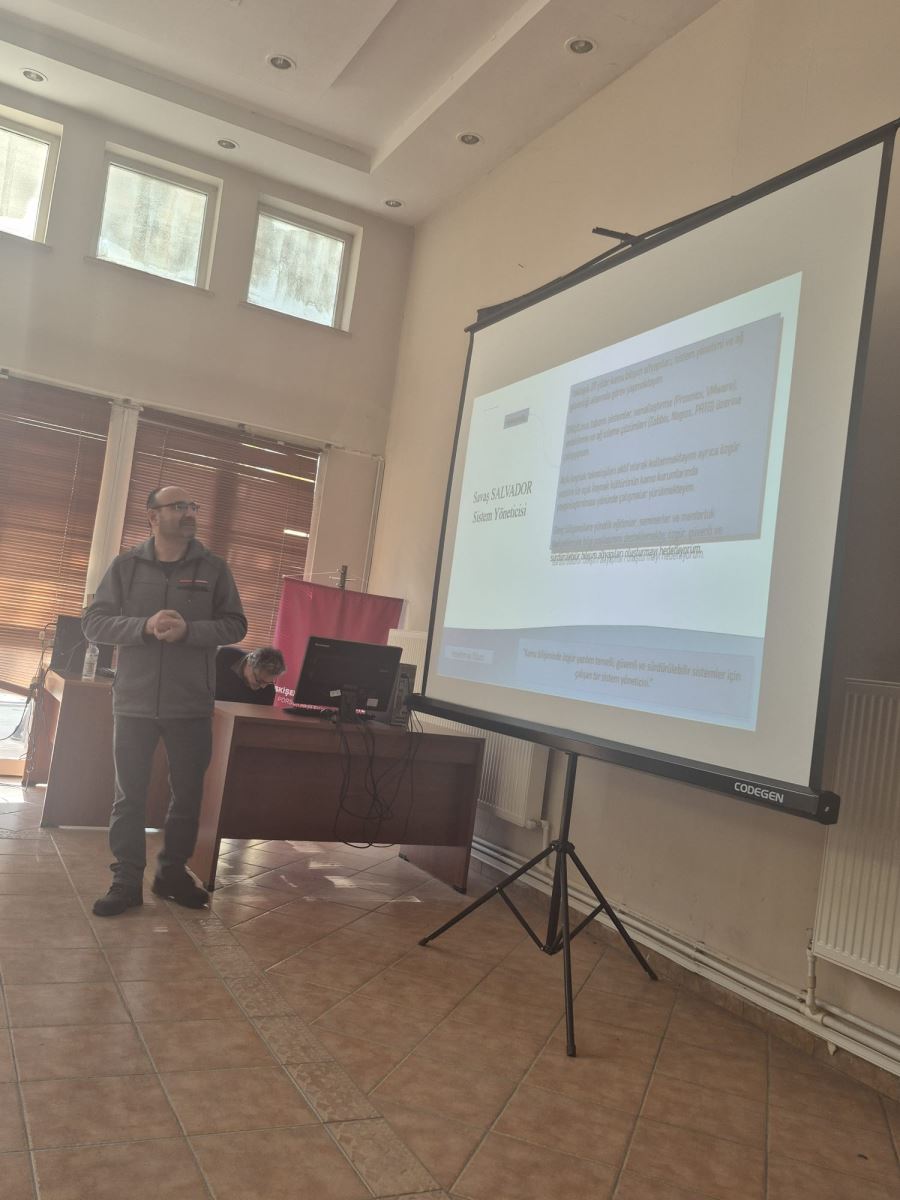 Zonguldak İl Sağlık Müdürlüğü’nden Sayın Savaş Salvador’un konuşmacı olarak yer aldığı etkinlikte, açık kaynak sanallaştırma teknolojilerinin temel prensipleri, Proxmox’un kullanım alanları ve özgür yazılımların sistem yönetimindeki avantajları ele alındı. Katılımcılar sektördeki güncel eğilimler, açık kaynak çözümlerinin kurumsal yapılarda nasıl değerlendirilebileceği ve kariyer planlamalarında özgür yazılım becerilerinin önemi üzerine fikir alışverişinde bulundu. Etkinlik, öğrencilerin bilişim teknolojilerinde güncel gelişmeleri yakından tanıdığı ve geleceğe dair farkındalık kazandığı verimli bir oturum olarak tamamlandı.