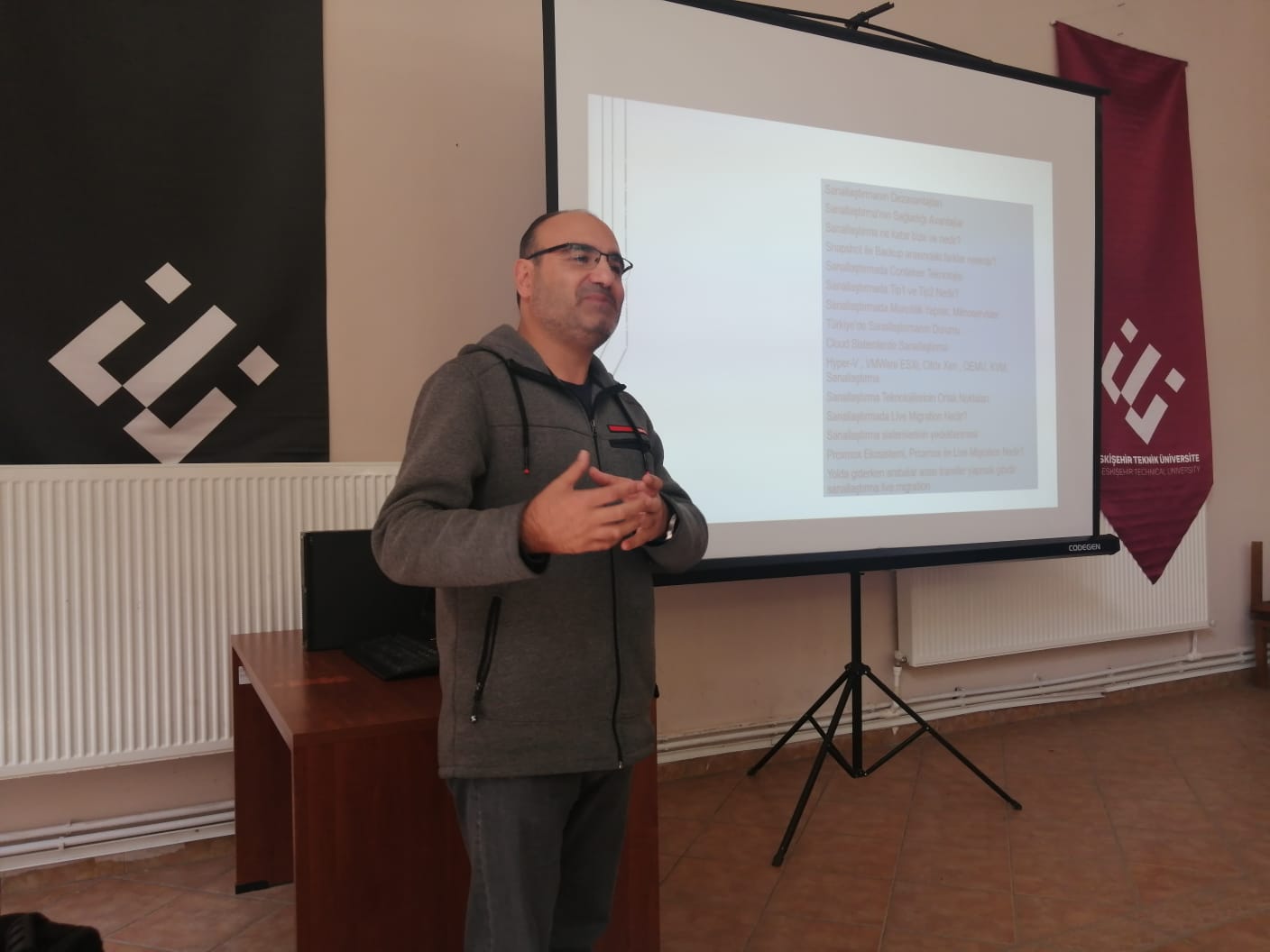 Bölümümüz tarafından düzenlenen “Sanallaştırma ve Özgür Yazılım: Açık Kaynak Sanallaştırmada Proxmox Nedir?” başlıklı seminer 6 Kasım Perşembe günü Üniversitemiz Porsuk Kampüsü’nde öğrencilerimizin ve öğretim elemanlarımızın katılımıyla gerçekleştirildi.